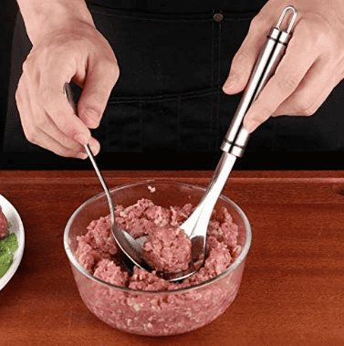 يتميز تصميم الملعقة بشكل مثالي يُسَهِّل تشكيل كرات اللحم بسهولة ودقة.